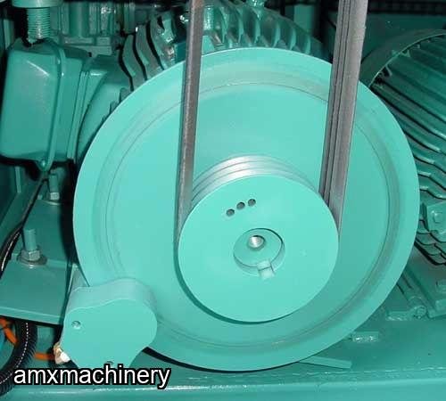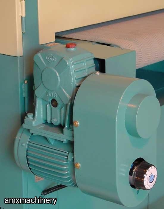 The conveyor belt feed system has a large 3 HP motor for heavy-duty performance. The system has infinitely variable feed speed from 15 to 50 feet per minute by means of a heavy-duty Regal variable drive with oil bath gears and bearings. The conveyor belt is a heavy duty Goodyear type mat to insure quality slip free performance and long belt life.